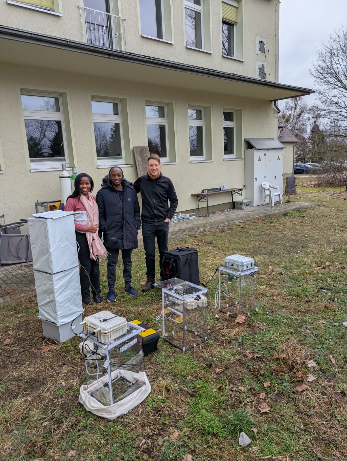 Der Wissenstransfer wird durch Hauke Schmülling begleitet, Doktorand an der Universität Greifswald und seit 2024 Gastwissenschaftler und Ko-Betreuer am ZALF. Im Januar und Februar 2026 wurden zwei internationale Gastwissenschaftler:innen – Therese Ave Maria aus Rwanda und Asadhu Ssebyoto aus Uganda – im EcoTecAnalytics Lab intensiv geschult. Im Fokus standen dabei praktische Kompetenzen: vom Zusammenbau der CHASY LOCO-Systeme über Fehlersuche und Wartung bis hin zur fachgerechten Durchführung von Messkampagnen.