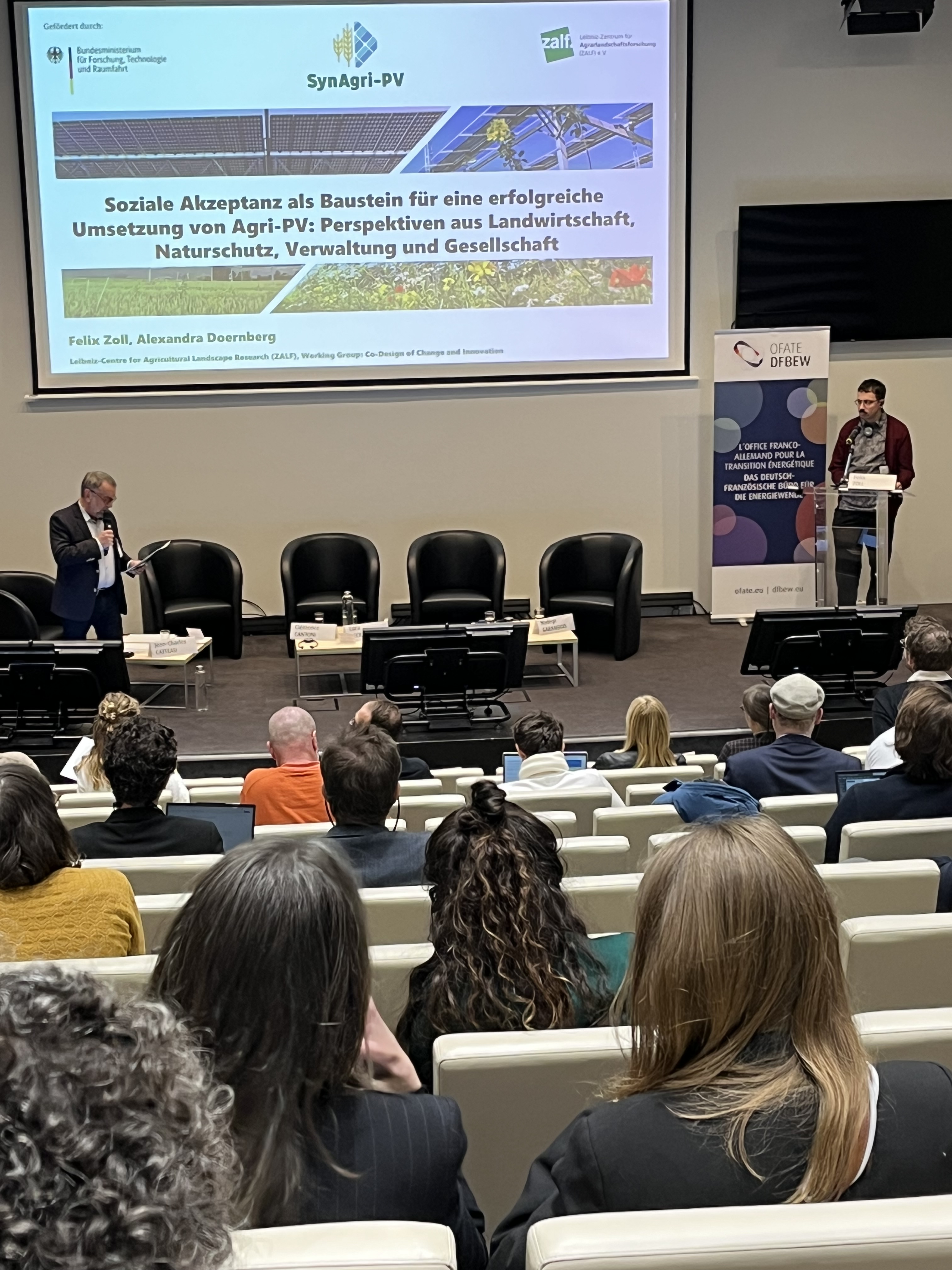 Mit einer Keynote vertrat Felix Zoll das ZALF sowie das Projekt SynAgri-PV auf der Konferenz „Agri-Photovoltaik in Deutschland und Frankreich: Regulatorische und ökonomische Entwicklungen“.