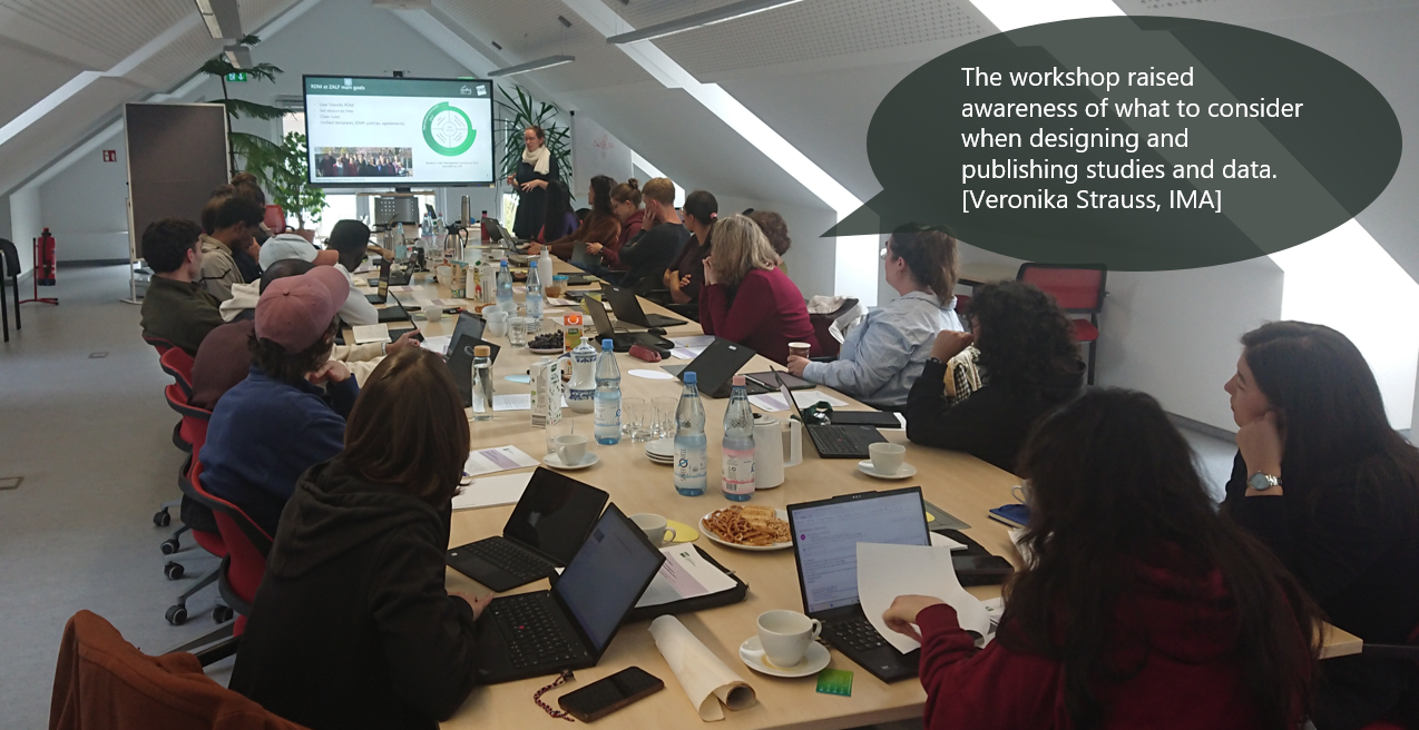 24 participants from eight socio-economic research groups explored topics such as planning, quality checks, anonymization, and data publication. Together with an expert from GESIS, participants’ pre-submitted papers were analyzed and discussed with regard to quality indicators. Tim Kleineberg (GOV) emphasized: “Open Science and data publishing is one essential step in trustful scientific work.” Veronika Strauss (IMA) added: “The workshop raised awareness of what to consider when designing and publishing studies and data.”