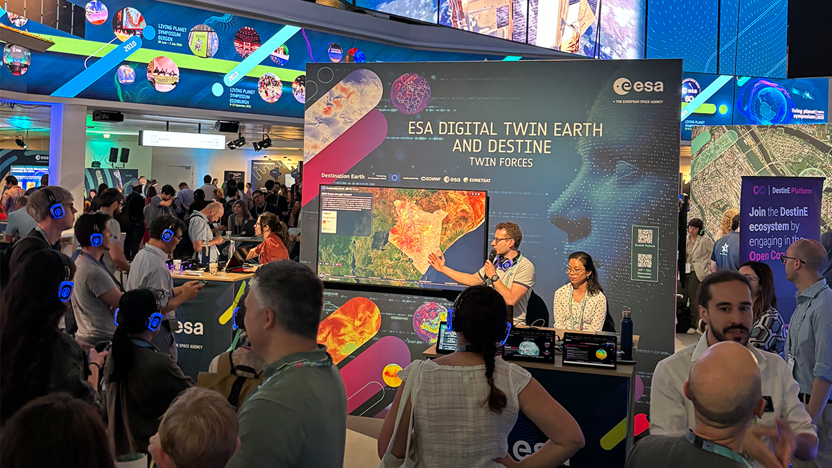 Live demonstrations of EOAgriTwin added an interactive dimension to ZALF’s participation. At the ESA DestinE and Digital Twin Earth booth, Jonas Schreier and Jamina Bondad presented the system’s main functionalities, including dynamic scenario simulations and its modular architecture. The sessions attracted strong interest from attendees exploring how EO-based digital twins can be used in practice.